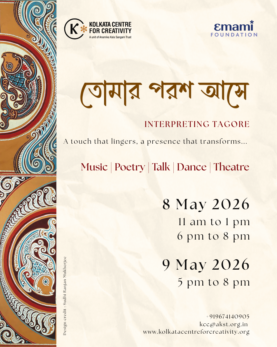 Kolkata Centre for Creativity presents তোমার পরশ আসে, the annual Rabindra Jayanti celebration, a two-day programme commemorating the legacy of Rabindranath Tagore.