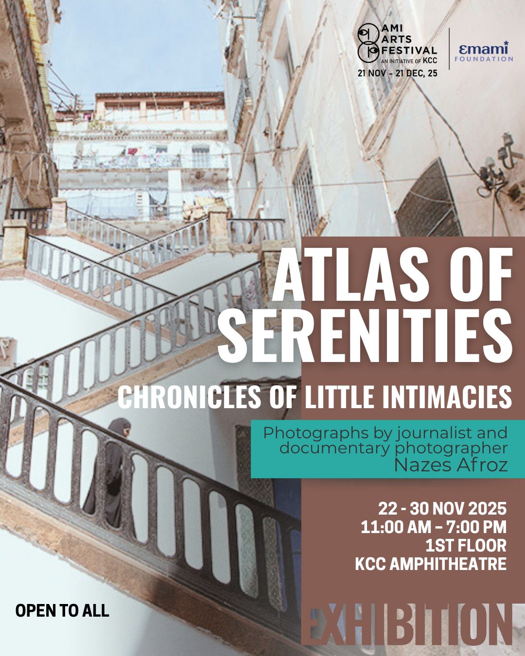 Kolkata Centre for Creativity presents Atlas of Serenities: Chronicles of Little Intimacies, a photography exhibition by journalist, writer, translator, and photographer Nazes Afroz, as part of AMI Arts Festival 2025.