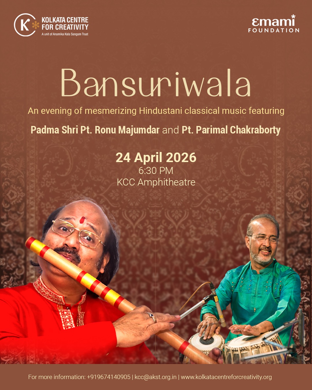Kolkata Centre for Creativity presents Bansuriwala, an evening of Hindustani classical music featuring Pandit Ronu Majumdar and Pandit Parimal Chakraborty.
