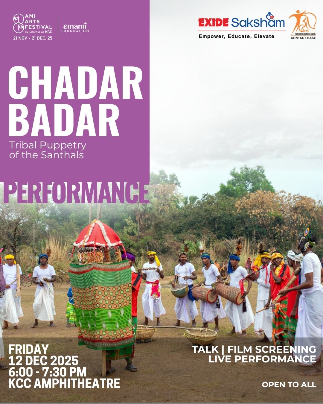 As part of AMI Arts Festival 2025, Kolkata Centre for Creativity presents Chadar Badar: Tribal Puppetry of the Santhals — an immersive programme combining film, practitioner insights, and a live demonstration.