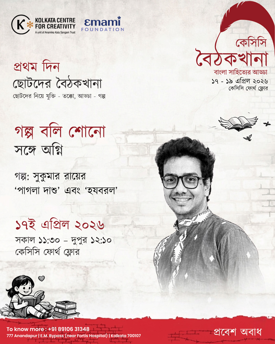As part of Chhotoder Baithakkhana under KCC Baithakkhana, this creative writing workshop introduces young participants to the art of storytelling. Conducted by ইন্দ্রনীল সান্যাল, the session encourages students to transform their ideas into engaging narratives.