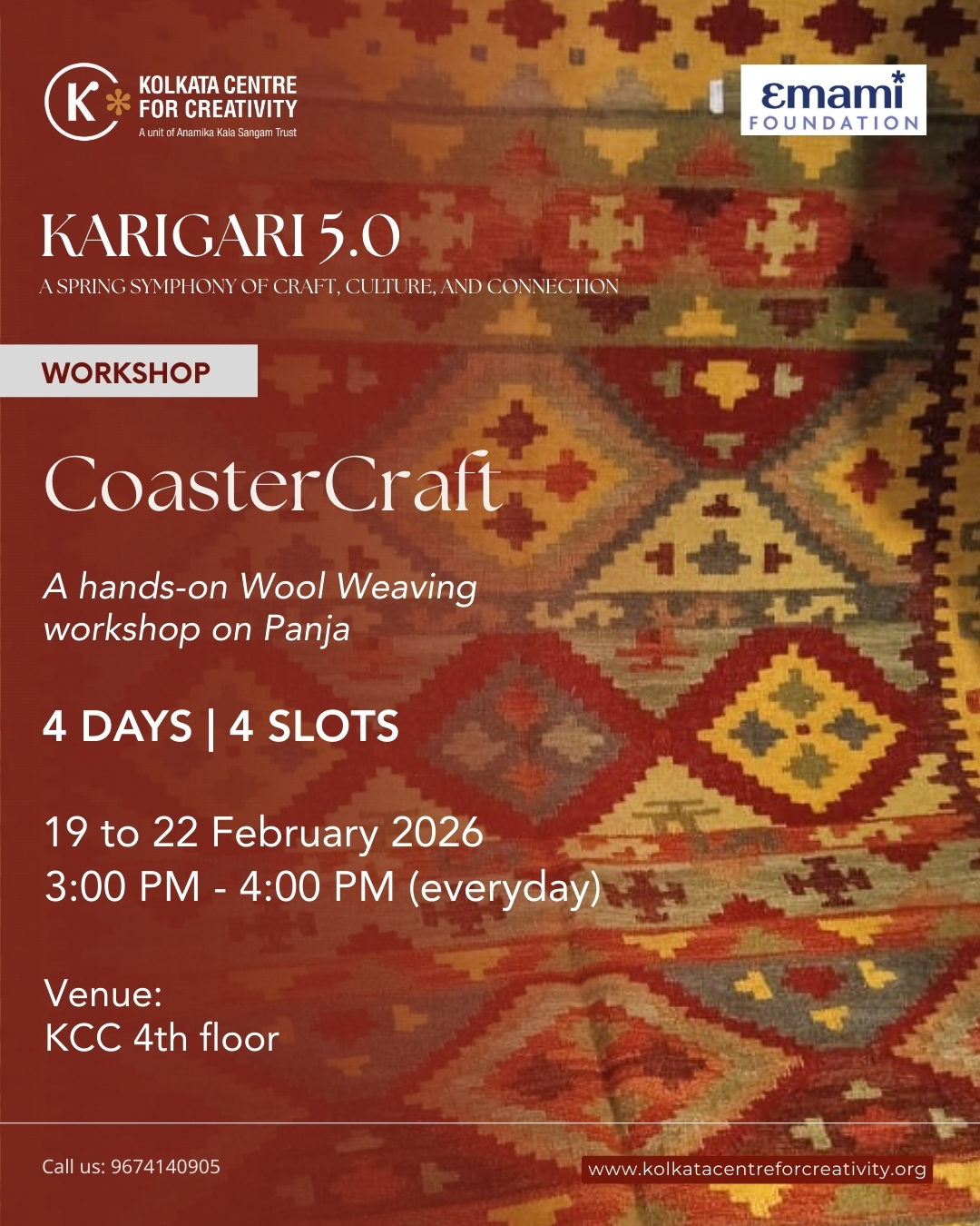CoasterCraft: Wool Weaving on Panja is a hands-on workshop that introduces participants to the traditional art of wool weaving using a panja loom. Steeped in age-old textile practices, the session offers an immersive experience of working with wool, understanding basic weaving techniques, and exploring colour coordination. Participants will create one colourful wool coaster during the workshop and receive an additional finished coaster crafted by the artist.