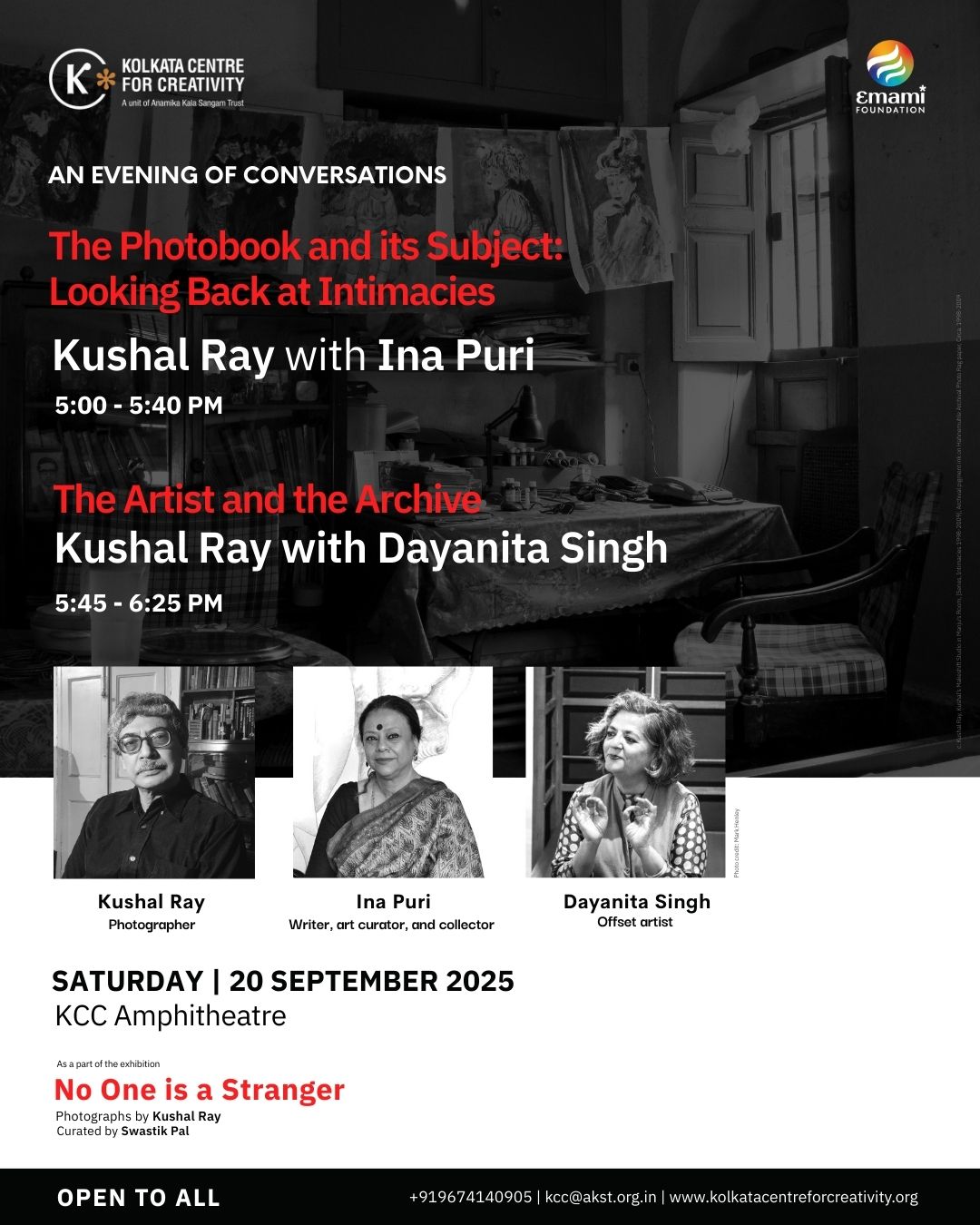 KCC presents a series of 2 conversations as a public-facing programme under No One is a Stranger (29 August - 20 September 2025) – an exhibition of works by noted photographer Kushal Ray.