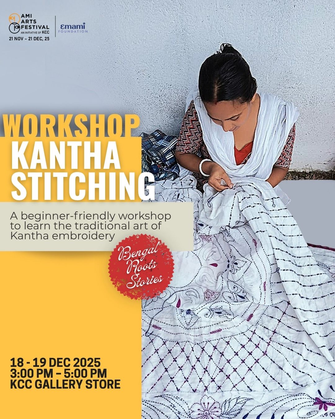 Experience the beauty of Kantha weaving, a centuries-old Bengali craft that weaves tradition into every stitch. Steeped in the stories passed down through generations, this art firm reflects the spirit and creativity of rural Bengal. Immerse in the heritage and fine craft of Kantha, guided by skilled artisans at the Kantha stitch workshop, a part of the Bengal Roots Stories Pop-up show.