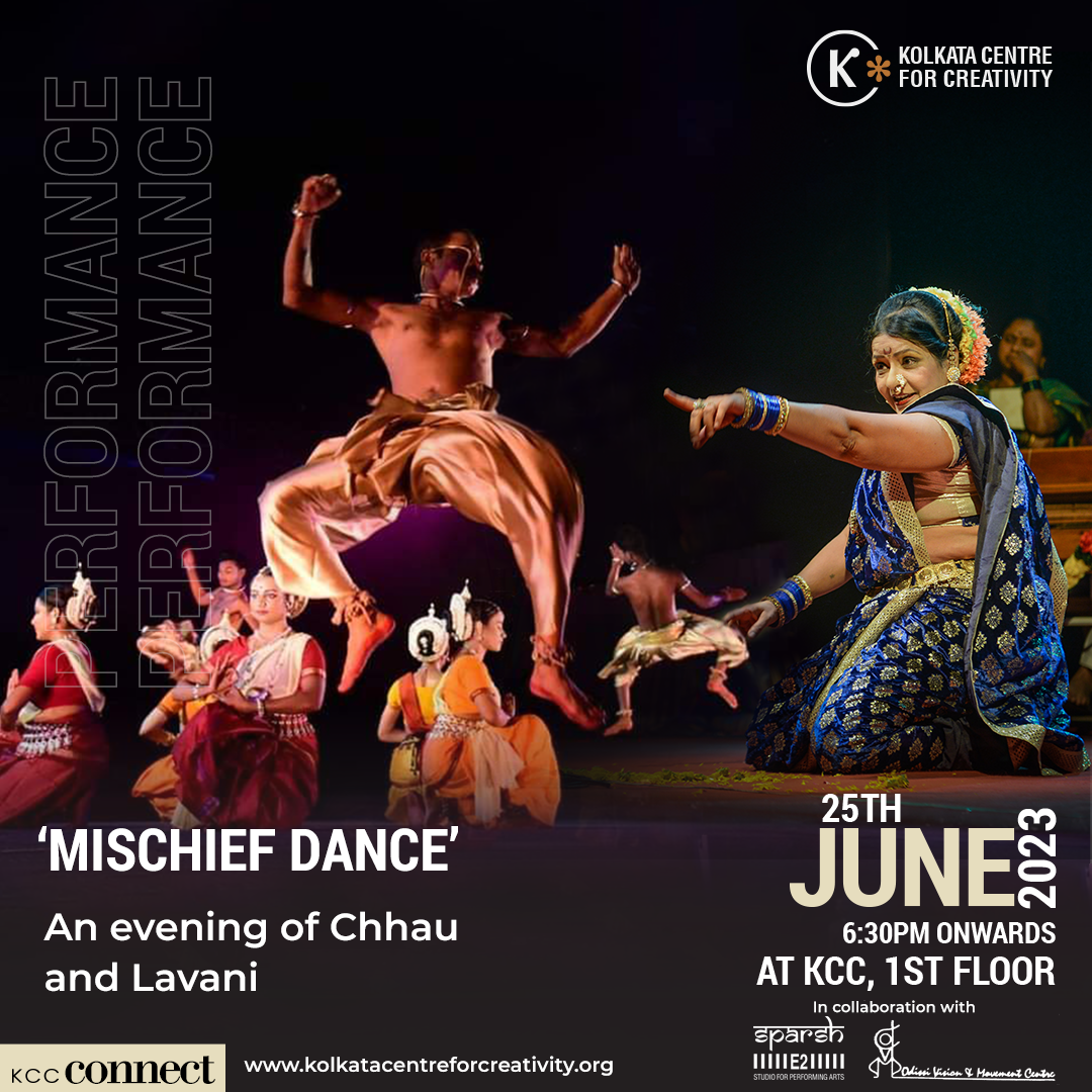 Experience the enchantment of Indian performing arts with Mischief Dance - An Evening of Chhau and Lavani presented by Kolkata Centre for Creativity in association with Sparsh Studio for Performing Arts and Odissi Vision and Movement.