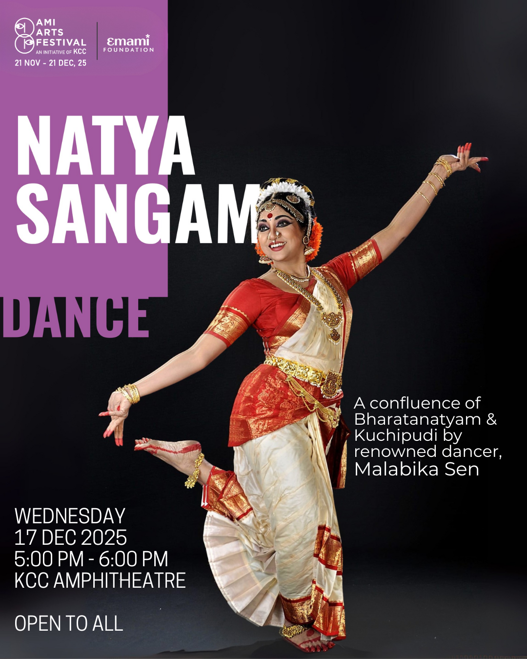 As part of AMI ARTS FESTIVAL 2025, Kolkata Centre for Creativity presents Natya Sangam, a unique solo recital by internationally acclaimed dancer Malabika Sen. This performance is a celebration of two great traditions of Indian classical dance — Bharatanatyam and Kuchipudi — woven together seamlessly into a powerful and graceful evening of rhythm and expression.