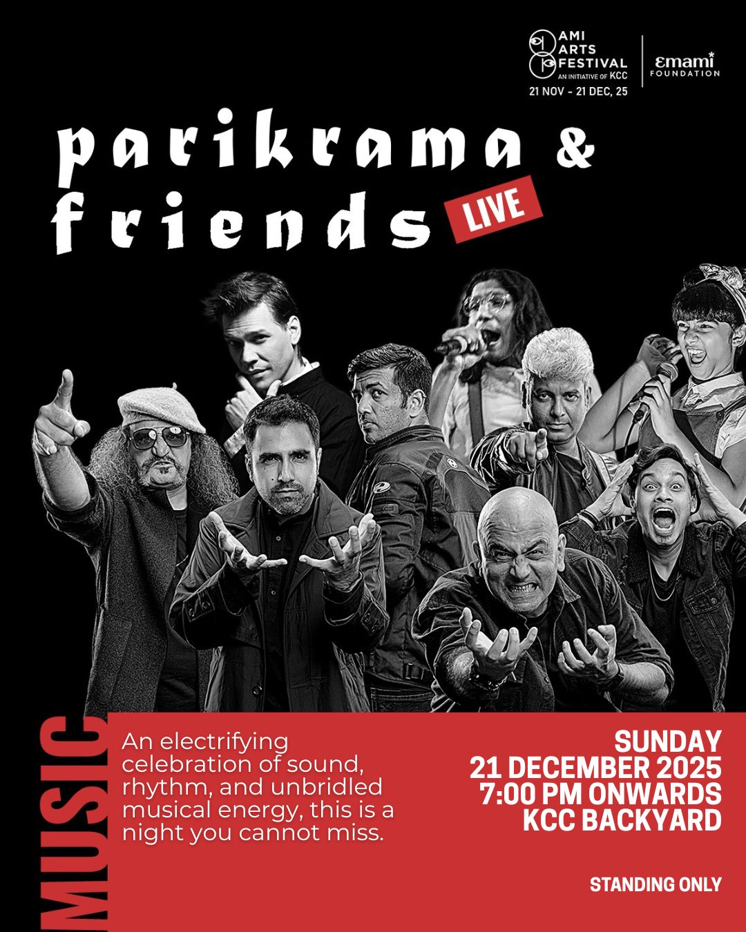 Brace yourself for a power-packed finale of the AMI Arts Festival 2025, featuring Parikrama & Friends Live in concert! This performance brings India’s legendary rock band together with Luke Kenny and Megan Rakesh for an unforgettable evening. For over thirty years, Parikrama has defined the soundscape of Indian rock music, and this special collaboration fuses their timeless energy with Luke’s soulful depth and Megan’s powerful vocals.