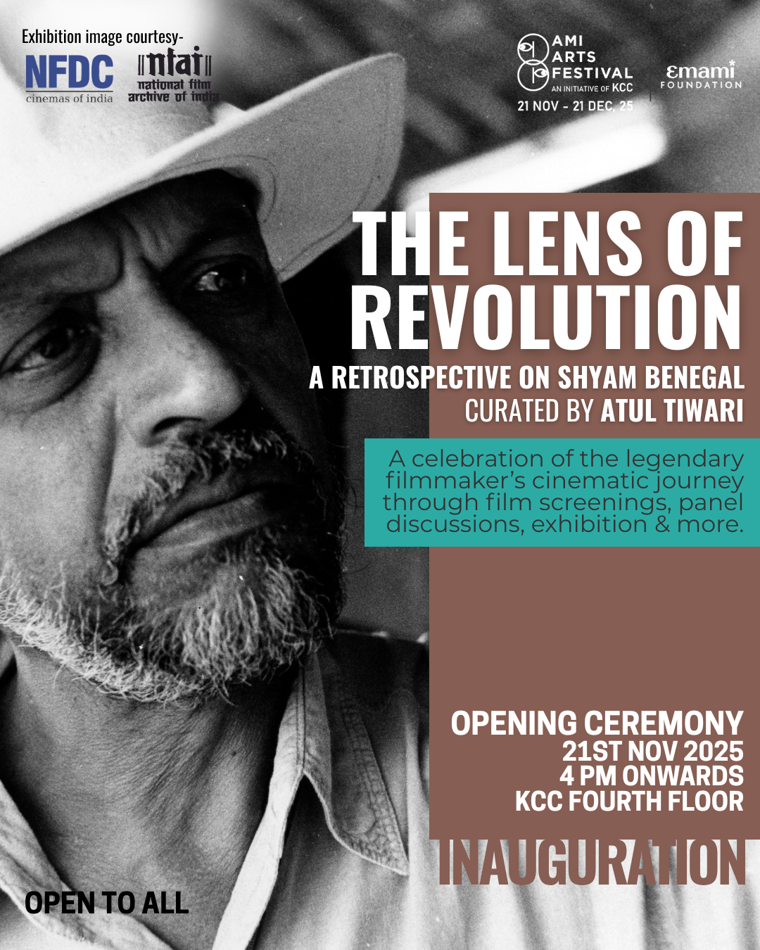Part of the AMI Arts Festival 2025 at the Kolkata Centre for Creativity, “The Lens of Revolution” is a two-month retrospective curated by Benegal’s long-time collaborator, Atul Tiwari. The event features screenings of his landmark films, exhibitions, panel discussions, and conversations with collaborators and contemporary filmmakers influenced by his work.