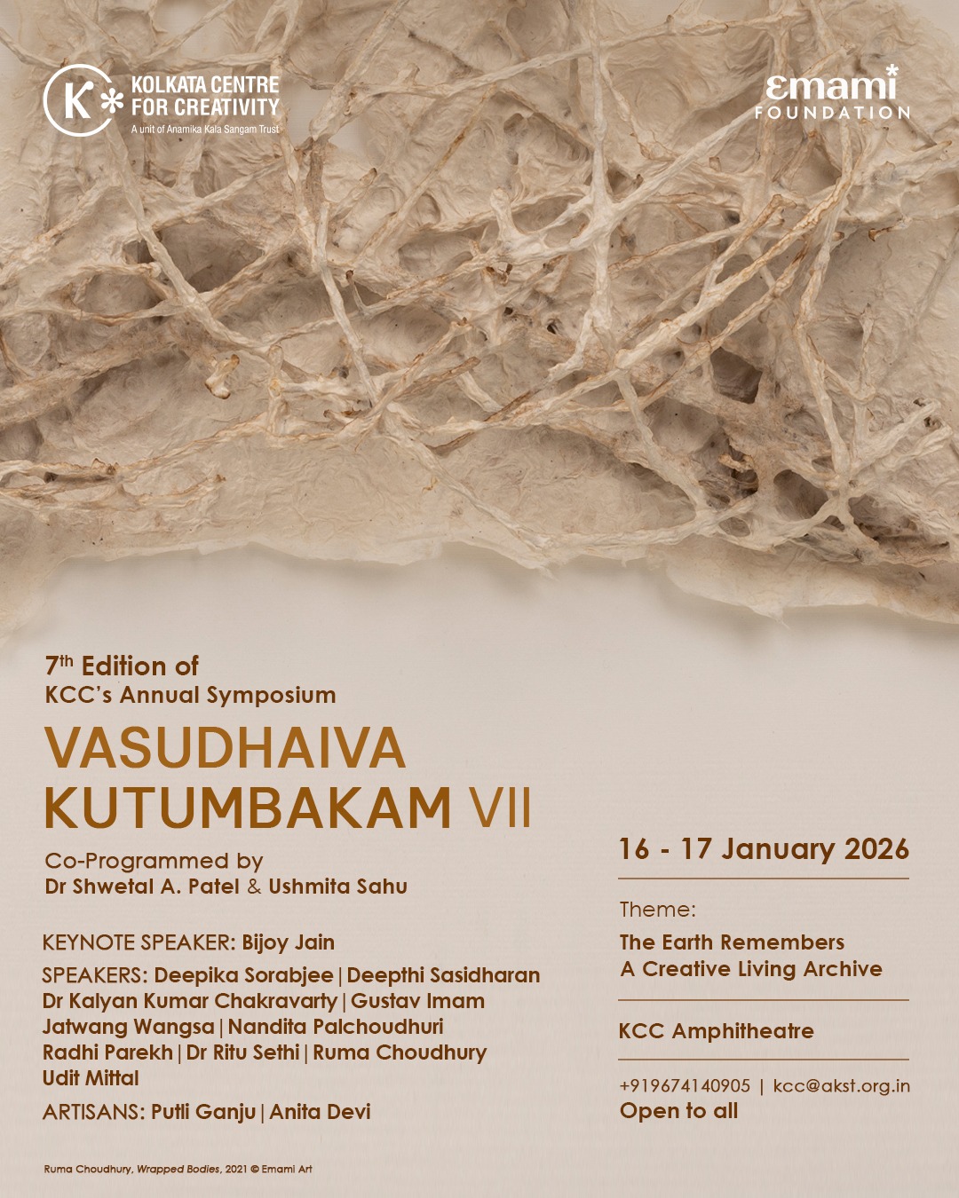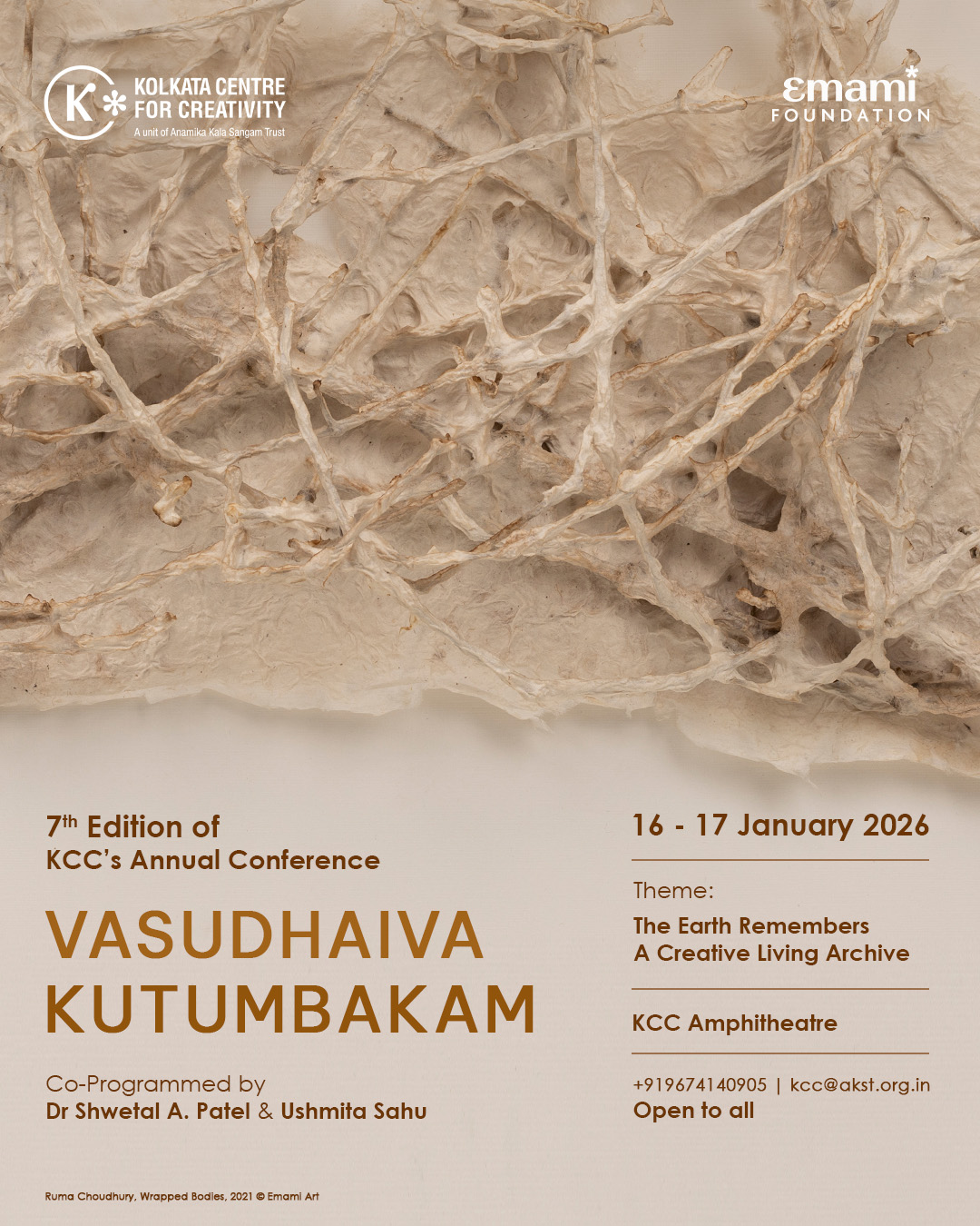 KCC presents the 7th edition of its annual symposium Vasudhaiva Kutumbakam (VK) with the theme being ‘The Earth Remembers: A Creative Living Archive’ scheduled for 16-17 January 2026 at Kolkata Centre for Creativity, Kolkata.